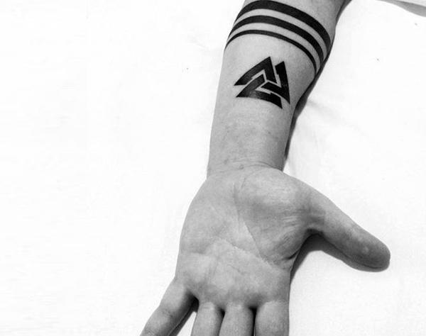 Se você estiver procurando por uma tatuagem de bracelete viking, o Valknut pode ser o símbolo mais adequado para você. O Valknut, também conhecido como o coração dos caídos ou o coração de Hrungir, é um símbolo viking composto de três triângulos entrelaçados que representam um relato da Edda em prosa no qual Thor, o deus do trovão, mata o gigante Hrumgir.