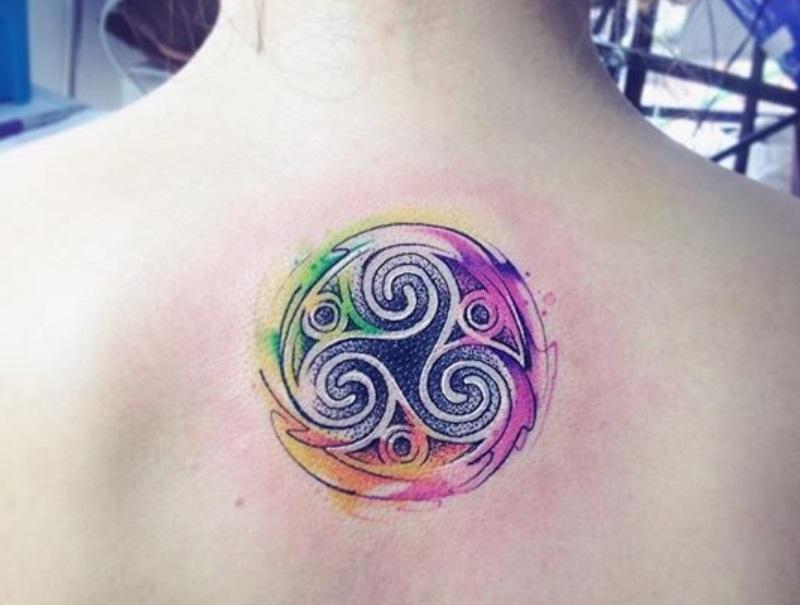 - Triskel: uma tatuagem que era geralmente usada por mulheres, e é caracterizada por uma espiral de três braços que se juntam no centro do desenho. Cada braço do triskel tinha um significado: o primeiro braço representava os limites e capacidades de nossos sentidos; o segundo simbolizava o pensamento, a consciência e a razão; e o terceiro espiral representava o caminho dos deuses e da alma. Este desenho também era feito muitas vezes com um círculo externo, que simboliza o mundo e o infinito.