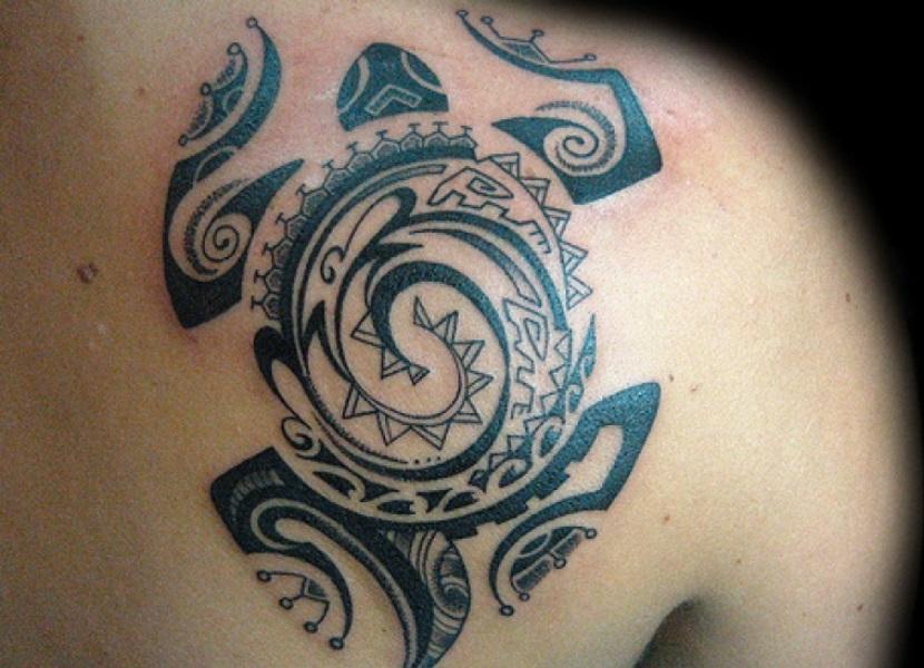 - Tartaruga maori: é um design adequado tanto para tatuagens tribais masculinas, quanto para mulheres. É um símbolo muito importante nessa cultura, pois por se tratar de um animal que pode se mover tanto na terra como na água, os maoris o utilizavam para transportá-los para seu lugar de descanso eterno depois de mortos. Além deste significado, simboliza também a paz, a vida e a boa sorte.