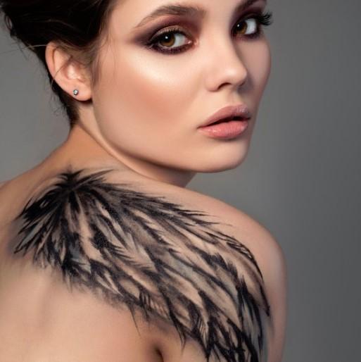 - Asas nas costas: costumam ser tatuagens grandes que ocupam grande parte das omoplatas ou das costas completas.