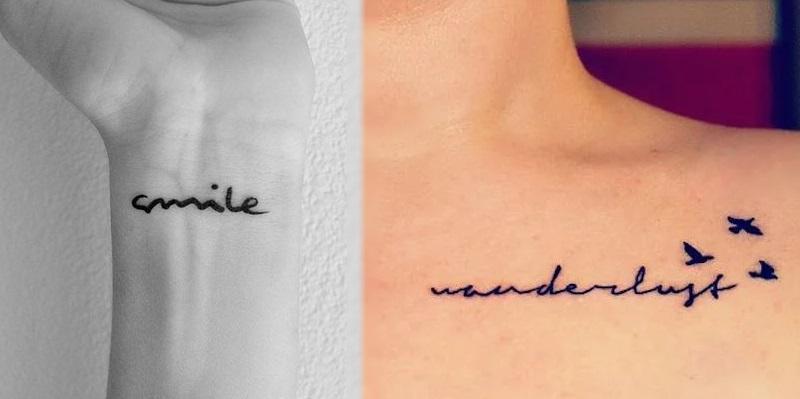 Desde palavras simples como "smile" (sorria) até frases mais longas como "acredite em você", "nunca deixe de sonhar", "a vida é bela", etc. Procure, pesquise e escolha a mensagem que quer gravar em sua pele para nunca esquecer.