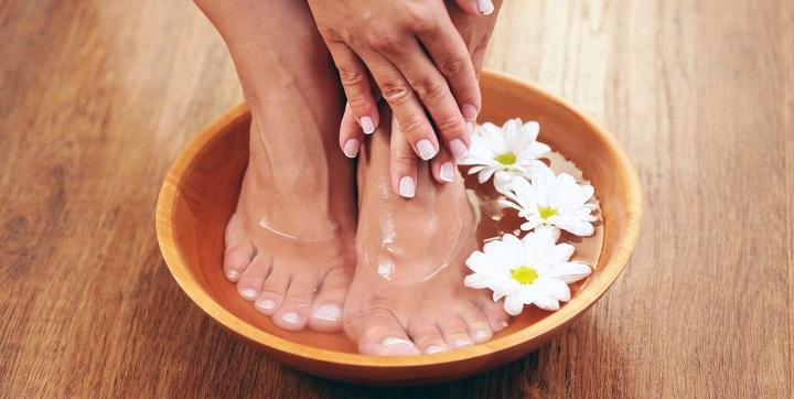Mergulhar os pés em uma infusão de camomila também pode ajudar a aliviar as dores e a amolecer a pele endurecida pelos calos. Prepare uma infusão com 4 colheres de sopa de camomila em um litro de água, deixe esfriar até a infusão estar morna e mergulhe os pés por 15 minutos.