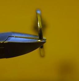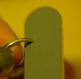 Bem devagar, abra o anel. Você poderá fazê-lo com os dedos, mas também pode usar uma pinça. Quando estiver um pouco aberto, lixe as pontas e elimine as impurezas do corte no anel.