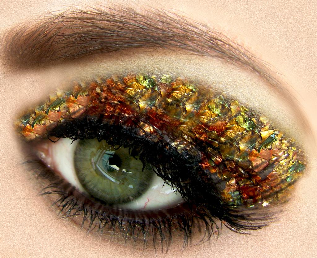 Busque também por bastante referências, para saber como vai ficar o look final. Algumas pessoas aplicam além da lateral dos olhos, na testa, na sobrancelha e em cima dos cílios. Veja o que você quer criar e seja ousada e criativa.