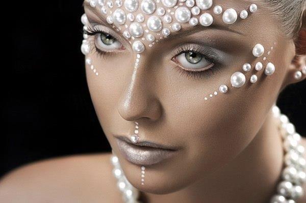 Você precisará encontrar as pérolas que são cortadas ao meio, essas pérolas apresentam uma superfície lisa que pode ser colada ao rosto. Você também deve aplicar usando uma cola de cílios postiço transparente. Você deverá usar as suas mãos para aplicar.