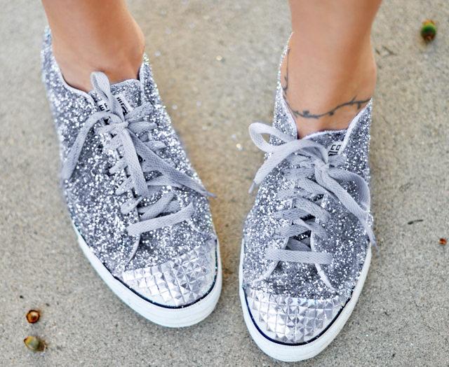 Colocar glitter no sapato é um jeito muito criativo de renovar o visual de calçados que já estejam desgastados e uma forma de seguir essa tendência da moda sem ter que gastar muito. Qualquer tipo de sapato pode receber o brilho, sendo que depois de eleger aquele que vai receber o novo visual é preciso que você reúna os seguintes materiais: glitter, pincel, folhas de jornal, colher de sopa, fita adesiva, pano, cotonete, verniz incolor próprio para sapatos, tigela rasa e bandeja de isopor. A quantidade de glitter vai depender do tamanho do calçado, sendo que se a ideia é deixar toda a sua superfície brilhosa, pode ser necessário 12 embalagens do produto. No caso de sandálias, é possível colocar o brilho apenas nas tiras e, em tênis, somente em algumas áreas.
