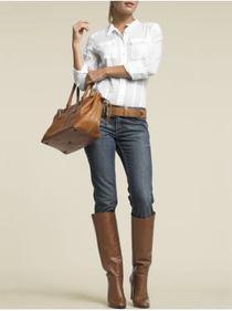 Se quer que a cor da sua bota contraste com sua roupa, podes experimentar combinar suas botas de cor caramelo com um tom escuro como o azul marinho.
