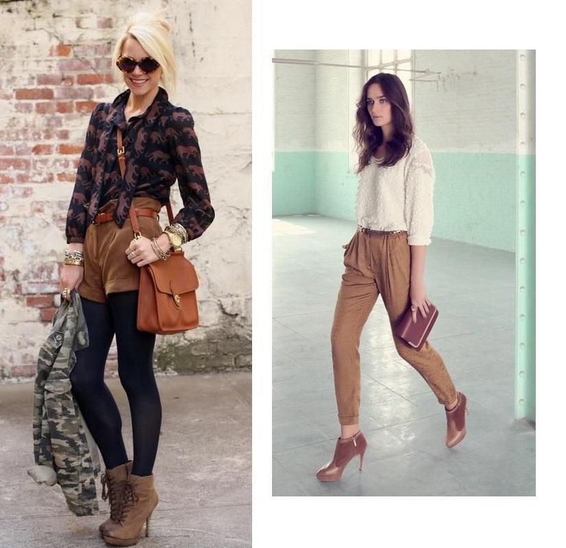 Deixe de lado o pensamento de que as saias e os shorts só ficam bem com botas altas, pois agora a tendência marca umas lindas botas de cano curto com estas peças de roupa. Os tons marrom no calçado ficam bem com quase todas as cores, por isso escolha a saia que mais gostar, seja ela lisa, estampada, xadrez, de listras, etc., e experimente para ver se combina com suas botas marrom favoritas. No inverno, use meias para obter combinações diferentes e estar na última moda.