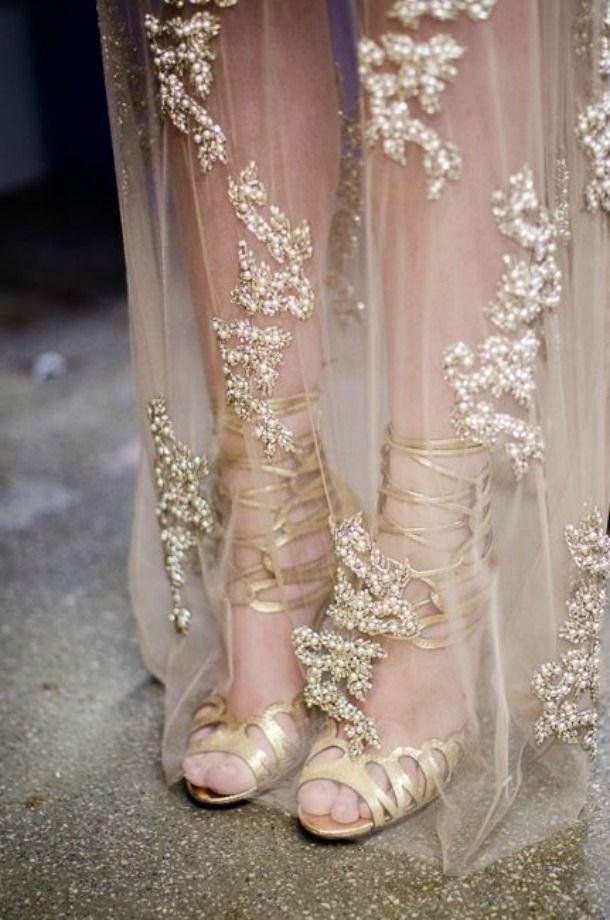 Da mesma forma, os sapatos dourados são aliados perfeitos quando se está criando um estilo romântico ou naif. Alguns sapatos dourados nos remetem quase imediatamente aos contos de fada.