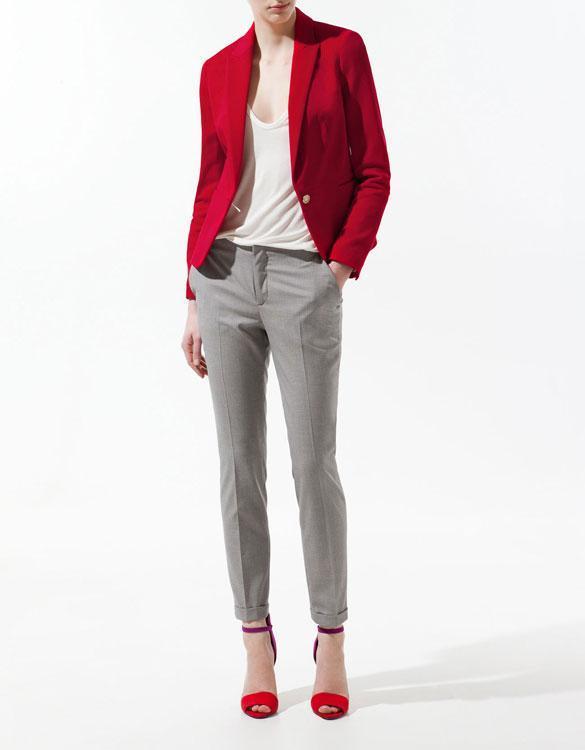 Para saber como combinar um blazer vermelho para ir ao escritório, o melhor é optar por diminuir a elegância desta peça com a ajuda de peças em tons claros. O cinza, o branco ou o pérola são os favoritos para criar um look de escritório com blazer vermelho; para dar o toque chique ao seu estilo, o melhor é vestir com sapatos que tenham algum elemento vermelho que realçarão seu bom gosto.