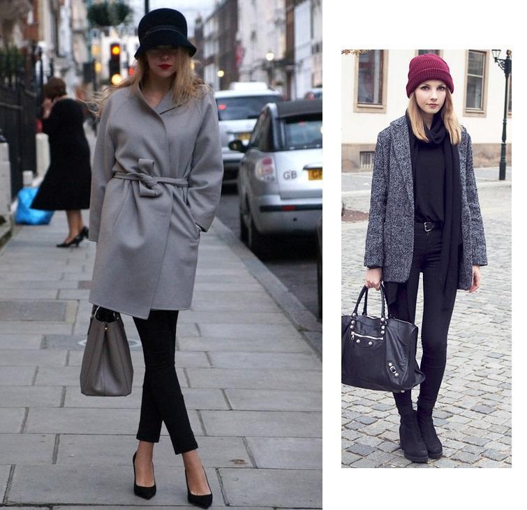 Os casacos cinzas também permitem usar roupas mais elegantes, sóbrias e sofisticadas. Se quer tirar partido desta peça em ocasiões mais formais, aposte pelo look total black: você pode escolher desde um simples vestido preto até à combinação de blusa com saia ou calça, todas as opções são válidas.