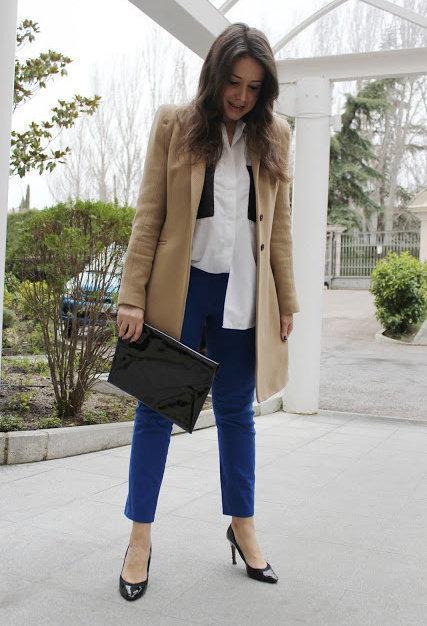 Para conseguir um look mais informal e diário, pode optar por combinar um sobretudo bege com peças jeans. Como a época do ano em que costumamos vestir casacos é mais fria, é recomendável optar por calças jeans justas combinadas com uma blusa de tom alegre que deem um colorido ao seu look.