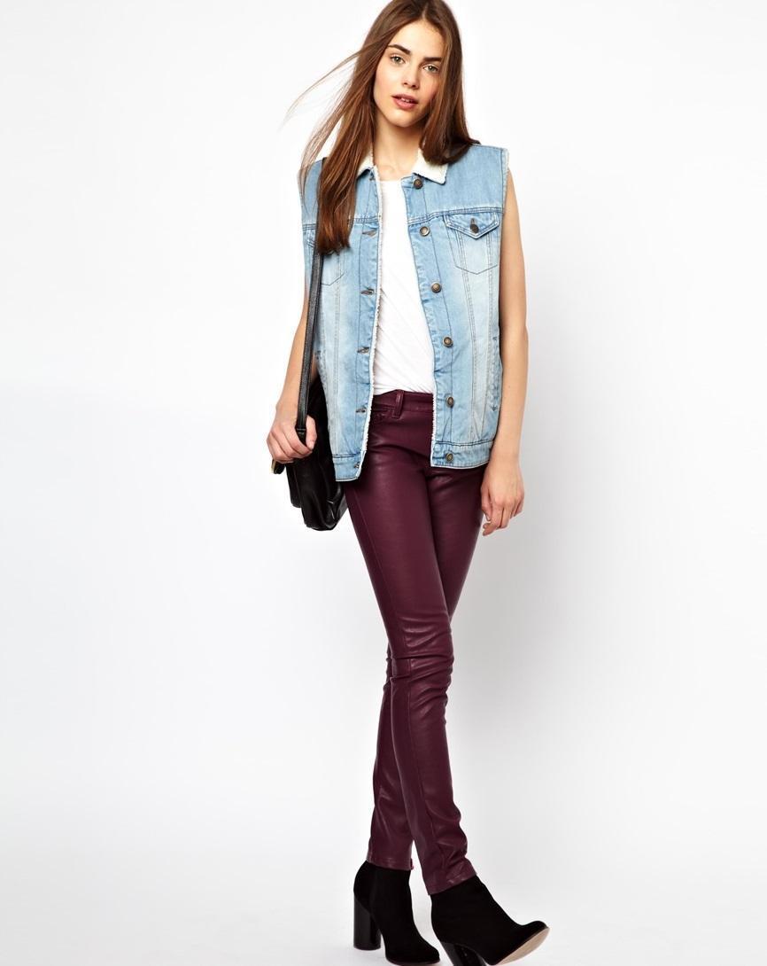 O denim continua pisando forte nas coleções de roupa, e seja em casacos, camisas ou coletes, é perfeito para combinar com uma calça bordô. Você pode criar looks casuais muito favoráveis com os quais poderá ir muito cômoda fazer todas as suas atividades cotidianas habituais.