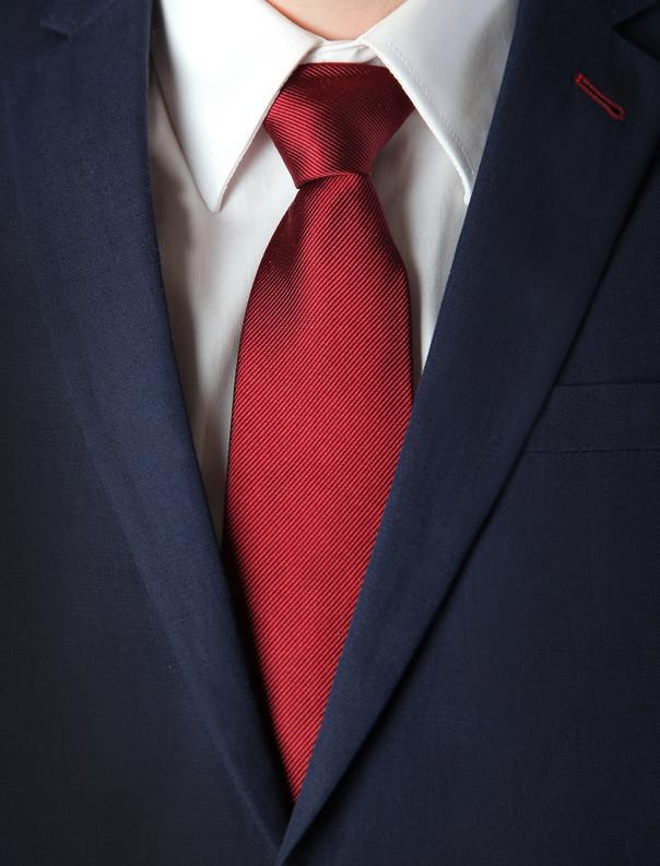 As gravatas vermelhas devem ser usadas com terno escuro, seja azul, preto ou marrom escuro, qualquer combinação de cores escuras encontrará acomodação com uma gravata avermelhada.
