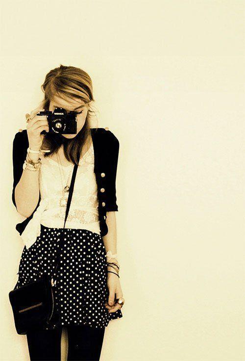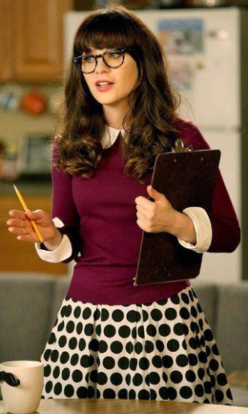 Para potenciar o ar naífe das saias de bolinhas, não há nada melhor do que escolher complementos deste tipo. Você pode combinar com blusas, jaquetas de lã ou camisas com gola Peter Pan. É um look habitual, por exemplo, da atriz Zooey Deschanel.