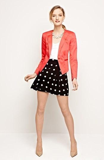 Apesar das saias de bolinhas não serem a primeira coisa que pensamos quando tentamos criar um look elegante, sempre podemos tirar o toque naífe e dar um aspecto mais formal e arrumado ao estilo, usando os complementos e brincando com eles.