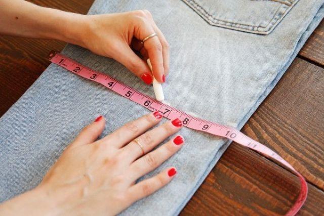 Para cortar calça jeans para fazer shorts, comece por medir 40 centímetros da cintura da calça jeans e marcar com um giz, esta será a altura dos shorts. Esta medida pode mudar em função do comprimento que queiramos dar aos shorts, tenha também em conta que sempre poderá fazer uma dobra caso fiquem muito compridos.