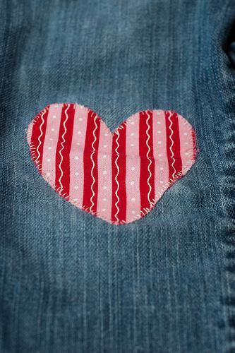 Com uma agulha grossa e linha da mesma cor que a calça costure o remendo no joelho da calça. Pode costurar na diagonal, horizontal, de forma desigual... como preferir. Aproveite para dar um toque próprio à calça na hora de costurá-la.