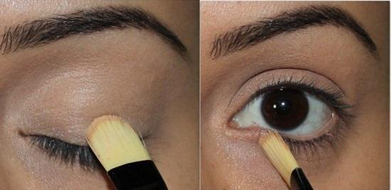 Abaixo da sobrancelha ilumine com uma sombra um pouco mais clara que o seu tom de pele, isso vai ajudar a disfarçar os seus olhos grandes.
