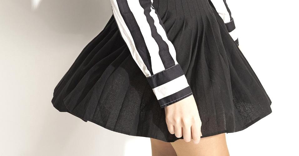 Quanto a saias e vestidos, invista nos modelos estampados e acima do joelho. Os modelos rodados são aqueles que lhe irão favorecer mais esta parte do seu corpo, pode apostar em godê, saia plissada, evasê ou com babados. Além disso, a cintura marcada ou mais alta vai ajudar a criar a ilusão de mais volume na zona.