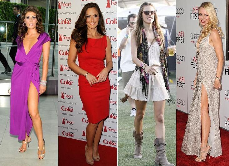 Além disso, os sapatos também poderão variar em base ao comprimento do vestido; acontece que ainda que não exista uma norma geral, os vestidos curtos não costumam ser usados com sapatos fechados ou tipo salão. No caso dos vestidos longos até os pés, recomenda-se usar saltos para não pisá-los, ainda que também seja possível vesti-los com sapato baixo.