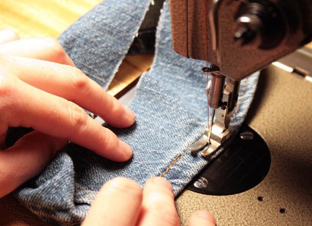 Agora está tudo pronto para começar a costurar. Prepare sua máquina com a linha. Para esta demonstração, nós usamos a linha mesclada para denim. Dependendo de sua máquina, pode ser que tenha de usar uma mais leve. Se esse for o caso, procure linha dourada que se pareça bastante à linha usada nas outras calças jeans. Quando estiver tudo pronto, pratique em um dos pedaços de jeans cortado, para que possa conseguir a melhor tensão da linha e o comprimento correto do ponto.