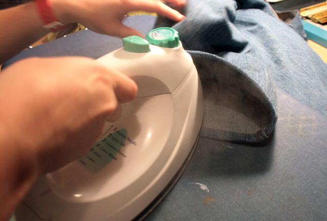 À medida que chegar no ponto de partida, costure sobre a mesma costura para fazer uma linha contínua. Mais uma vez, pode ser que tenha que girar a roda com a mão para superar esta parte mas grossa. Quanto tiver completado toda a circunferência, recorte as linhas e costure a outra perna. Depois é hora de passar a calça com o ferro a vapor sobre a barra feita. E já tem a barra da calça jeans feita! Se tiver alguma dúvida durante este processo consulte o nosso vídeo que ensina a fazer uma bainha nas calças.