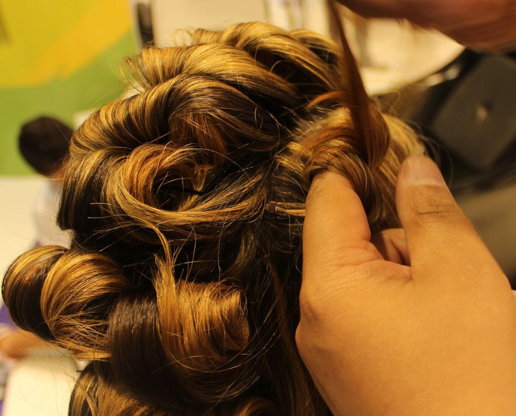 Enrole a mecha com os dedos, criando um caracol perfeitinho, e prenda com um grampo para fixar enquanto os fios esfriam. Repita esse procedimento para todas as mechas de todas as secções. Os cachos ficam mais abertos, dando leveza ao visual.