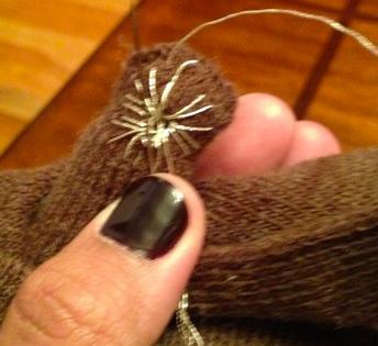 O processo é muito simples, coloque a linha na agulha e depois em forma de estrela passe a linha pela ponta do dedo, você pode fazer a decoração que quiser.