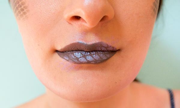 Na boca, os batons devem ornar com as cores das escamas. Nessa hora vale usar batons de cores exóticas como azul ou roxo metálico, ou ainda aplicar glitter na boca e até fazer o efeito de escama de peixe.