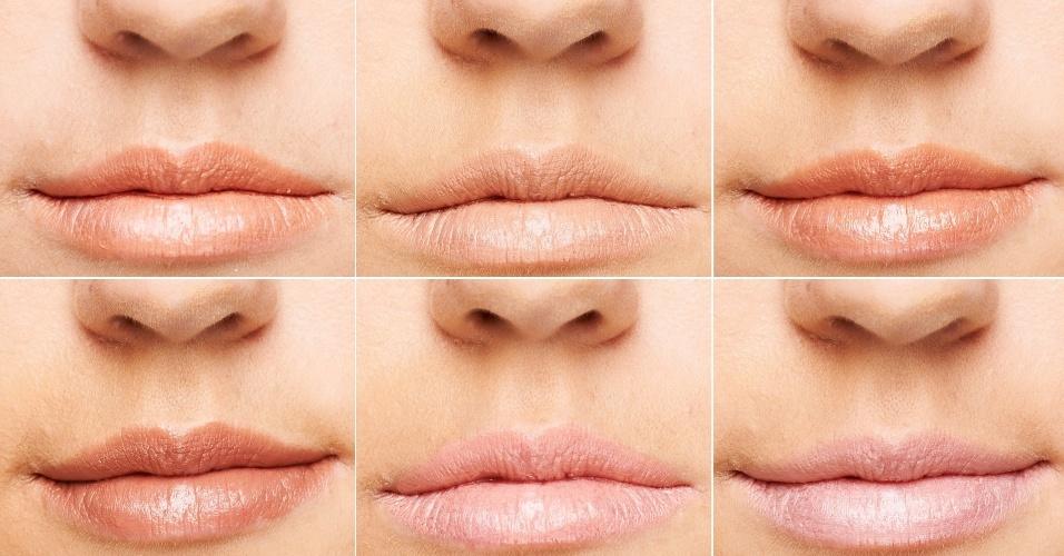 Para a boca, a aposta são os batons nude. Você pode passar um batom nude e, por cima passar um gloss nude mesmo no centro dos lábios para dar a sensação de lábios maiores. No caso de se tratar de um look de noite e quiser dar destaque aos seus lábios, poderá escolher um batom de uma cor mais viva, como o vermelho, pois como tem uma maquiagem de olhos neutra poderá brincar com a cor do seu batom.
