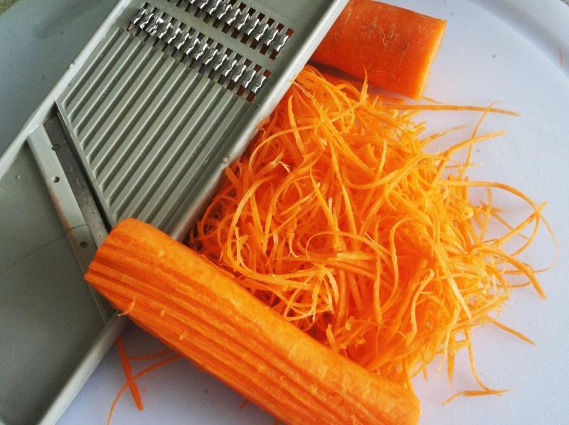 Descasque e rale as cenouras para uma panela; cubra-as por completo com o azeite de oliva.