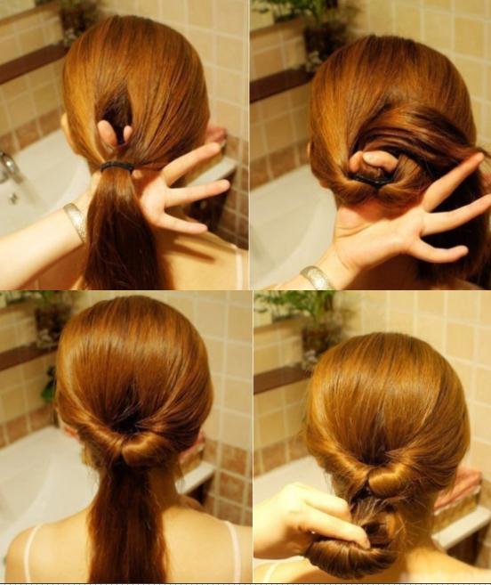 Outra opção de penteado preso bem simples é o rabo torcido. Com este penteado você consegue mudar o visual rapidamente sem ter muito trabalho. Tudo o que tem de fazer é um rabo de cavalo baixo, abrir o cabelo em duas partes e puxar o rabo para dentro. Com isto você consegue um torcido no cabelo bem legal. Agora você pode deixar o seu cabelo mesmo assim ou puxar novamente o rabo para dentro até ficar com o cabelo todo preso. Se tiver dúvidas confira a imagem ao lado.