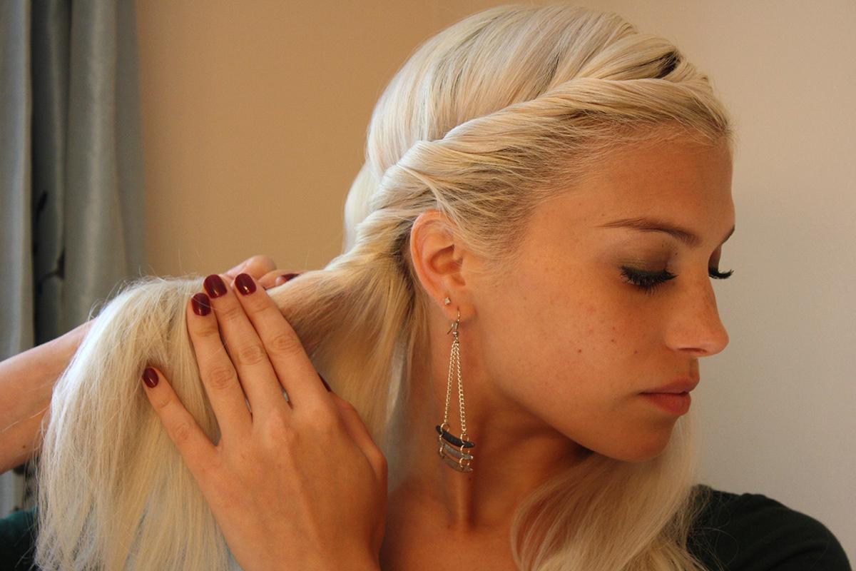 - Prenda cada uma das tranças com grampos (esconda-os entre os fios para que não se notem).