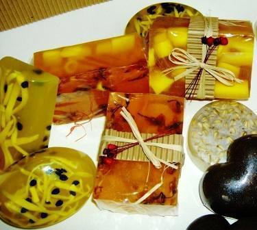 Antes de começar o preparo, reúna os seguintes ingredientes: 1 kg de base de glicerina para sabonete ou sabonete glicerinado branco ou transparente, lauril líquido, essência a seu gosto, corante alimentício, álcool de cereais, elementos decorativos (folhas ou flores desidratadas, sementes de frutos, etc). Pode encontrar a maioria destes produtos em lojas de materiais para artesanato.