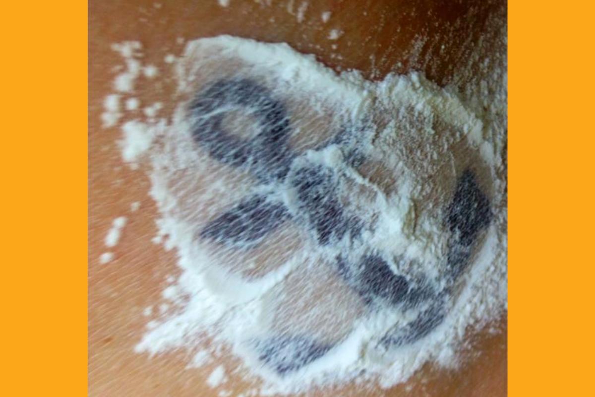 Agora você só precisa deixar a umidade do spray secar, sacudir um pouco o talco restante e pronto! Sua tatuagem falsa já estará perfeita para ser exibida.