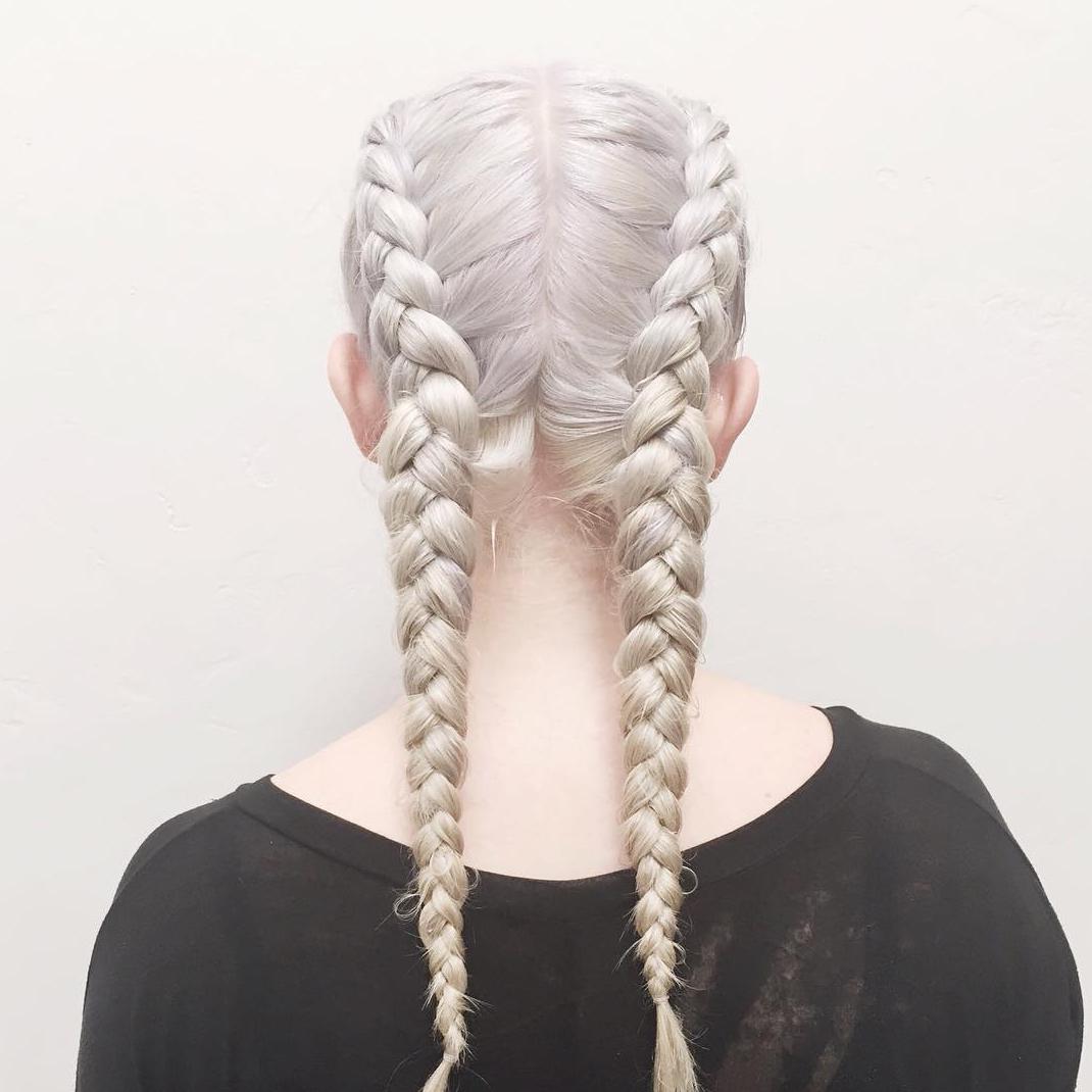 Uma opção muito legal é fazer as tranças holandesas normalmente e prender em rabo de cavalo centrado na zona da nuca. Um arraso!