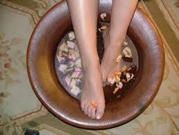 Prepare-se para o banho. Quando tiver tudo pronto mergulhe seus pés e deixe repousar na bacia durante quinze minutos, aproximadamente. Tente relaxar, ler, ver televisão ou escutar música enquanto toma o banho, assim o tempo passará mais rápido.