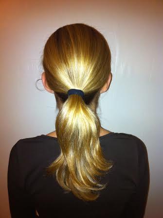 Escove bem o cabelo para que não esteja embaraçado. Depois, prenda em um rabo-de-cavalo como aparece na imagem.