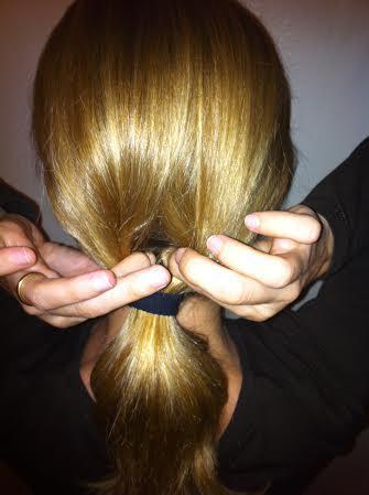 Agora, passe o cabelo por este buraco (de fora para dentro).