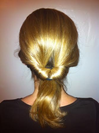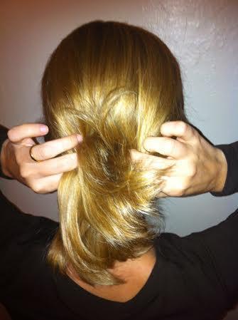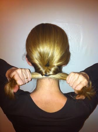 Como fica um pouco solto, divida o cabelo em duas partes e estique bem para que o penteado fique bem apertado.