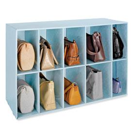 Outra opção é guardar suas bolsas em gavetas ou, se tiver naqueles móveis que têm várias divisórias pequenas.
