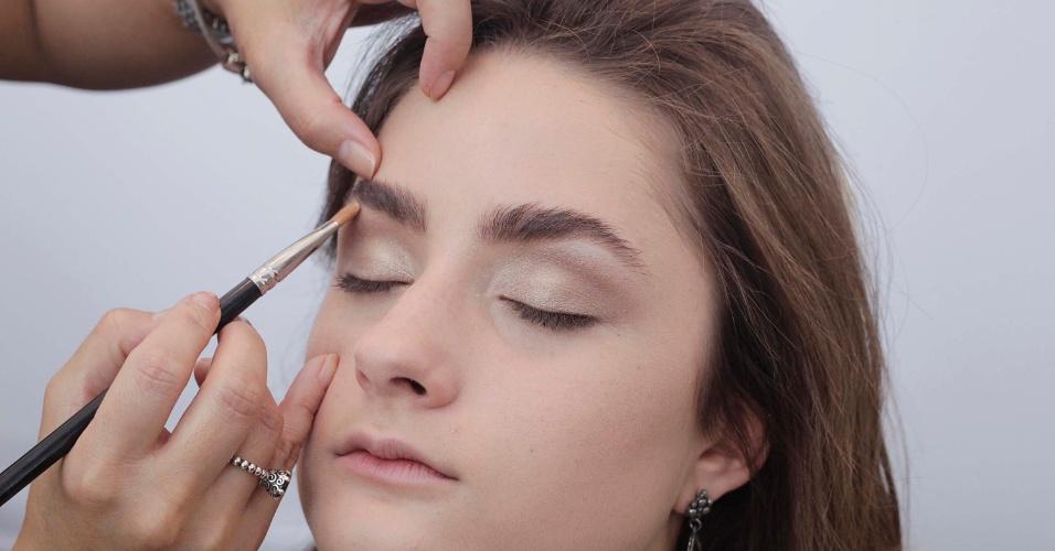 Para iluminar o meio da pálpebra, basta aplicar o produto que escolheu para fazer de iluminador e passar no meio da pálpebra com um pincel achatado. Vale lembrar que as sombras claras devem ser aplicadas primeiro que os tons escuros, por isso passe o iluminador no meio da pálpebra antes de outra sombra.