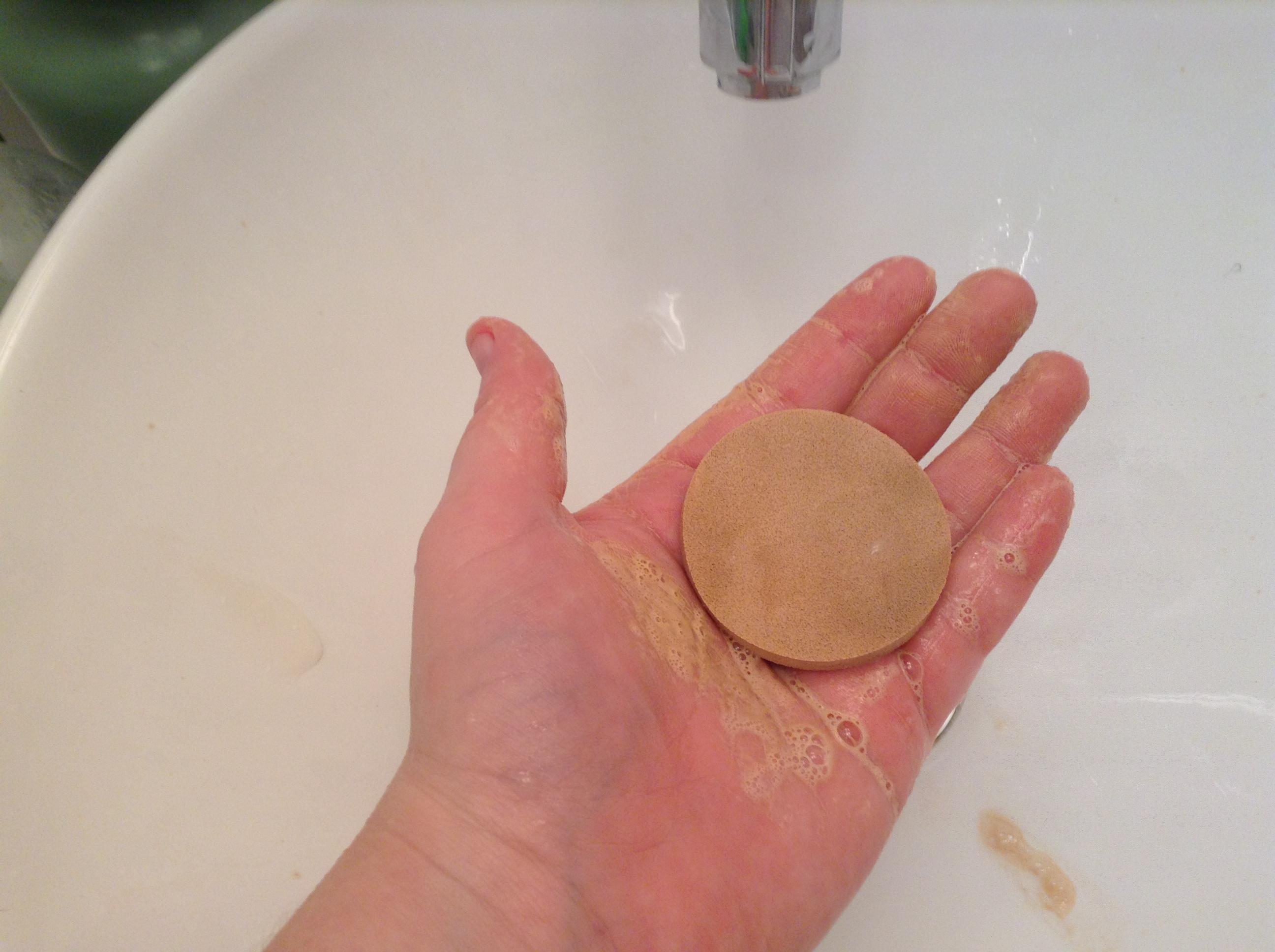 - Quando colocá-las embaixo da torneira, aplique o xampu ou sabonete e aperte/esprema a esponja para que ela absorva o produto e a água. Desligue a torneira e massageie sua esponja por alguns segundos. Não é para esfregar sua esponja, ou a vida útil dela será muito curta. Vá apertando a esponja ou esfregando ela contra a palma de sua mão. De modo que o atrito seja apenas com sua pele. Molhe a esponja e continue apertando-a. Repita o processo até que a água da esponja saia completamente limpa, sem nenhum resquício de produto e base. Evite o uso de anéis com muito detalhes, ou acabará ferindo e rasgando sua esponja.