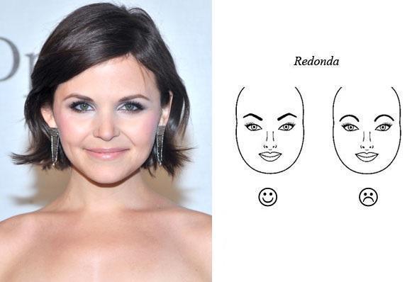 Na maquilhagem de um rosto redondo, os olhos esfumados são perfeitos para afinar o rosto e conferir um look atraente e atual. Tornar os olhos maiores também é um bom truque para alongar o rosto, aplicando um delineador branco na linha de água e, para finalizar, uma camada abundante de máscara nos cílios superiores.