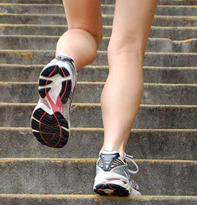 Na academia, uma modalidade muito popular para trabalhar a musculatura dos glúteos, posteriores da coxa e panturrilha é o step. Em casa você pode praticá-lo nas escadas, começando com movimentos mais básicos como subir e descer um degrau alternadamente, ao mesmo tempo que realiza movimentos com os braços.