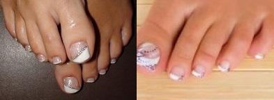 Agora também tem a possibilidade de fazer a pedicure francesa com pequenos detalhes e enfeites brilhantes, uma forma bastante original de decorar as unhas dos pés, que podem brilhar em eventos especiais com umas bonitas sandálias. Apenas tem de simplesmente fazer a pedicure tal e qual como explicamos no ponto anterior e acrescentar uns brilhantes de cor ou autocolantes na parte da unha que queira. Depois, deixe secar e aplique uma camada de brilhante transparente para selar a pintura.