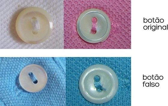 Uma das principais diferenças da camisa original da Lacoste da falsa, está nos botões, na camisa original terão sempre furos para passar a linha, e esses furos serão na posição horizontal.