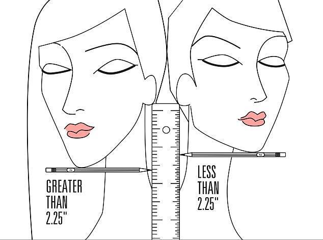 - Se a distância for inferior a 2,25 polegadas, isto é 5,7 centímetros, significará que o cabelo curto combinará muito bem com você. Se, pelo contrário, o número obtido for superior a 5,7 cm quer dizer que ficará melhor com o cabelo comprido.