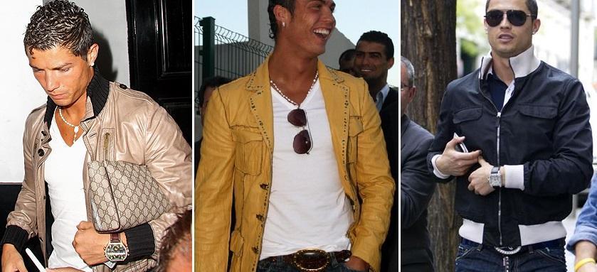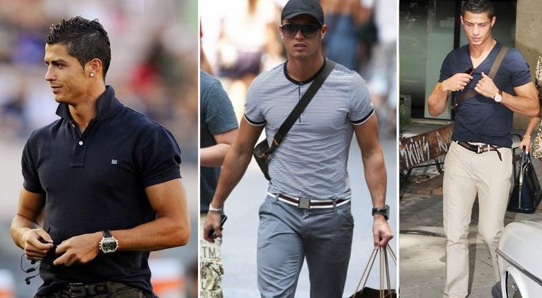 Se você gosta de complementos e jóias, ótimo! O Cristiano Ronaldo é especialista em completar seus looks com todo o tipo de complementos. Não faltam seus milhares de modelos e designs de óculos de sol, bonés, cintos, relógios de estilo esportivo bem grandes, assim como colares enormes e brincos de brilhantes.